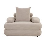 De zachte bekleding in een warme beige tint doet denken aan het serene zand van de woestijn en creëert een rustige en harmonieuze sfeer in je interieur. De royale vormen en vloeiende lijnen zorgen voor een uitnodigende uitstraling en maken deze loungestoel perfect om heerlijk in te ontspannen.