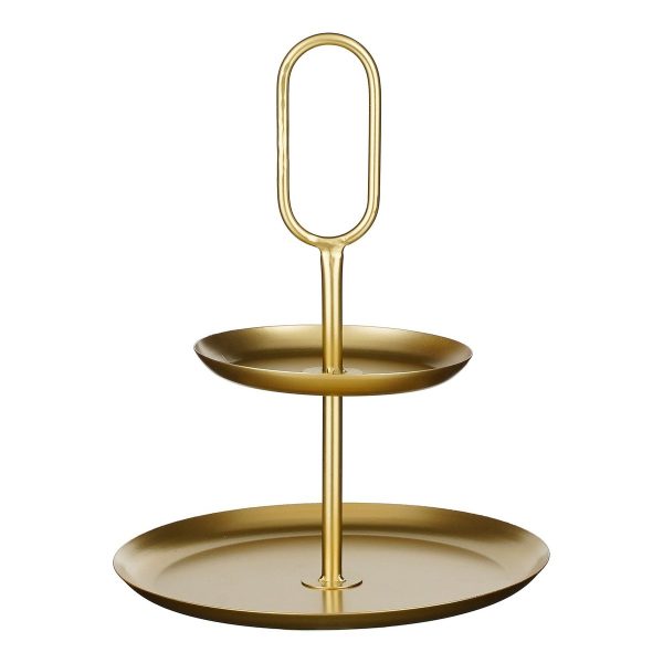 Dankzij de twee lagen kun je verschillende items overzichtelijk presenteren. Het elegante metalen ontwerp zorgt ervoor dat de etagère niet alleen praktisch is, maar ook een echte blikvanger op tafel of in de keuken.