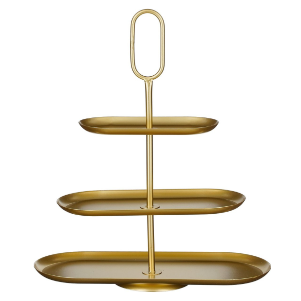 De Rama etagère van Mica Decorations is een stijlvolle en praktische serveertoren met een modern design. Dankzij de drie lagen kun je hapjes, fruit of decoratieve accessoires overzichtelijk presenteren, waardoor deze etagère perfect is voor een high tea, borrel of feestelijke tafelsetting.