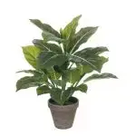 De bladeren zijn uitgevoerd in verschillende groentinten en groeistadia, waardoor de plant een levendige en natuurlijke uitstraling krijgt. De plant staat stevig in een terracotta bloempot met basaltgrijze pigmenten, waardoor hij direct klaar is om neer te zetten of te combineren met een sierlijke overpot die perfect bij jouw interieur past.