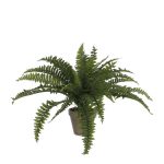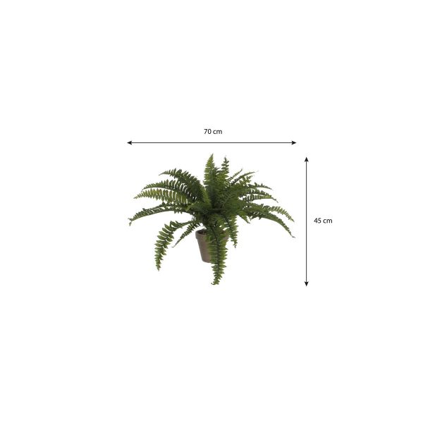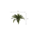 De bladeren zijn uitgevoerd in verschillende groentinten en groeistadia, waardoor de varen een bijzonder natuurlijke look krijgt. Met een hoogte van circa 40 cm en een volle diameter van ongeveer 55 cm is deze kunstplant perfect voor een dressoir, tafel of vensterbank. De plant is stevig verankerd in een terracotta bloempot met basaltgrijze pigmenten, waardoor elke pot een unieke uitstraling heeft. De kunstplant kan direct worden geplaatst of gecombineerd worden met een decoratieve sierpot.