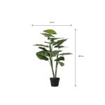 Deze opvallende kunstplant heeft grote, platte bladeren in een diepe donkergroene kleur, waardoor hij een krachtige groene blikvanger vormt in elke ruimte.De bladeren zijn uitgevoerd in verschillende maten en groentinten, wat zorgt voor een bijzonder realistische uitstraling. Dankzij het onderhoudsvrije ontwerp geniet je het hele jaar door van een weelderige plant zonder water geven of verzorging.