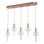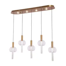 De Tubey hanglamp Copper Gold 5 is een stijlvolle en langwerpige lamp die luxe en modern design combineert. De kopergouden afwerking met glazen bollen en cilindervormige elementen zorgt voor een speels en elegant lichteffect. Met vijf lichtpunten en een langwerpig ontwerp is deze lamp perfect voor boven een eettafel of kookeiland. De geïntegreerde LED-verlichting geeft helder en neutraal wit licht en zorgt voor een strakke, moderne uitstraling.