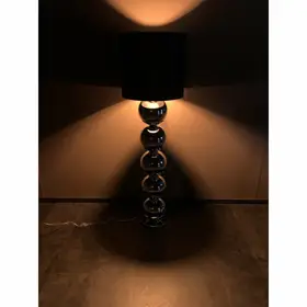 De XL Bollamp Chroom is een indrukwekkende vloerlamp die direct opvalt door zijn unieke ontwerp met vijf metalen bollen. De combinatie van het glanzende metaal en de satijnen zwarte kap zorgt voor een luxe en moderne uitstraling. Met zijn royale hoogte is deze lamp perfect als statement piece in de woonkamer of naast de bank. Ideaal om sfeer en design samen te brengen in één opvallend element.